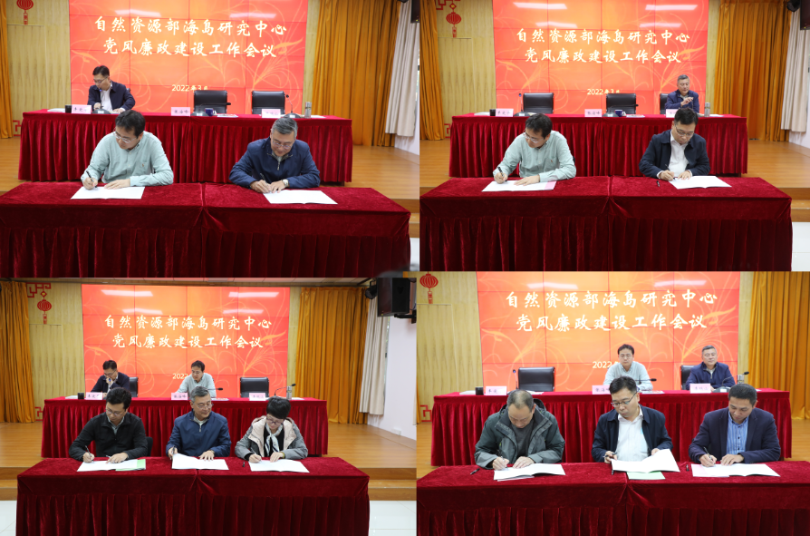 会上还举行了2022年度海岛中心党风廉政建设责任书签订仪式。中心党委书记与党委班子成员签订《党风廉政建设“一岗双责”责任书》,党委班子成员和党风廉政建设主体责任联系部门、党支部负责人签订《党风廉政建设责任书》。通过签订责任书,进一步抓牢抓实党风廉政建设责任落实,提醒督促党员领导干部带头廉洁自律和自觉接受监督,为中心各项工作开展提供坚强政治保障。
