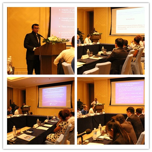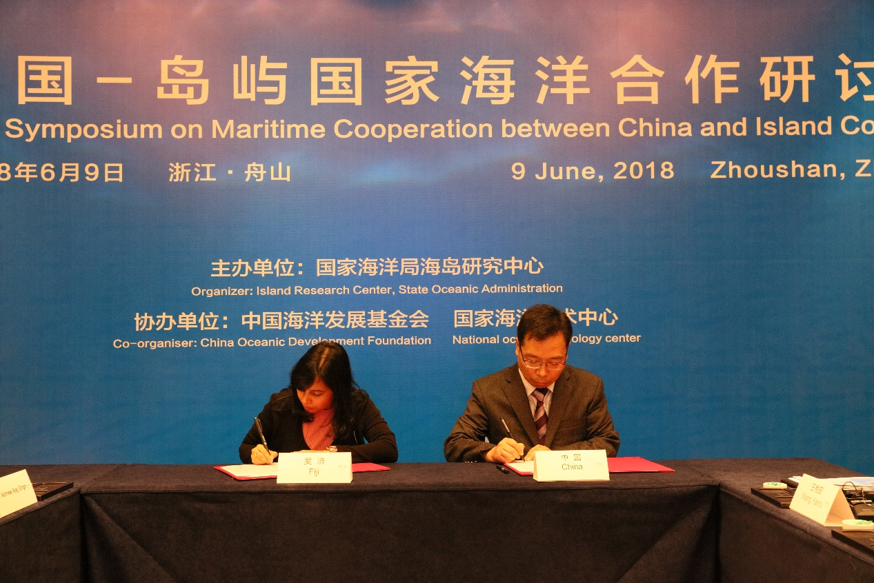 2018年6月9日,国家海洋局海岛研究中心在浙江舟山举办中国-岛屿国家海洋合作研讨会,会议主题为“推进海岛生态保护 深化海洋蓝色合作”。会议邀请了斐济、马耳他、几内亚比绍、斯里兰卡等国代表参会,政策法制与岛屿权益司赵培剑处长、王胜强处长、王艳茹、国际合作司王安涛处长、国家海洋局第一海洋研究所魏泽勋副所长、海岛中心丰爱平副主任等出席此次会议。