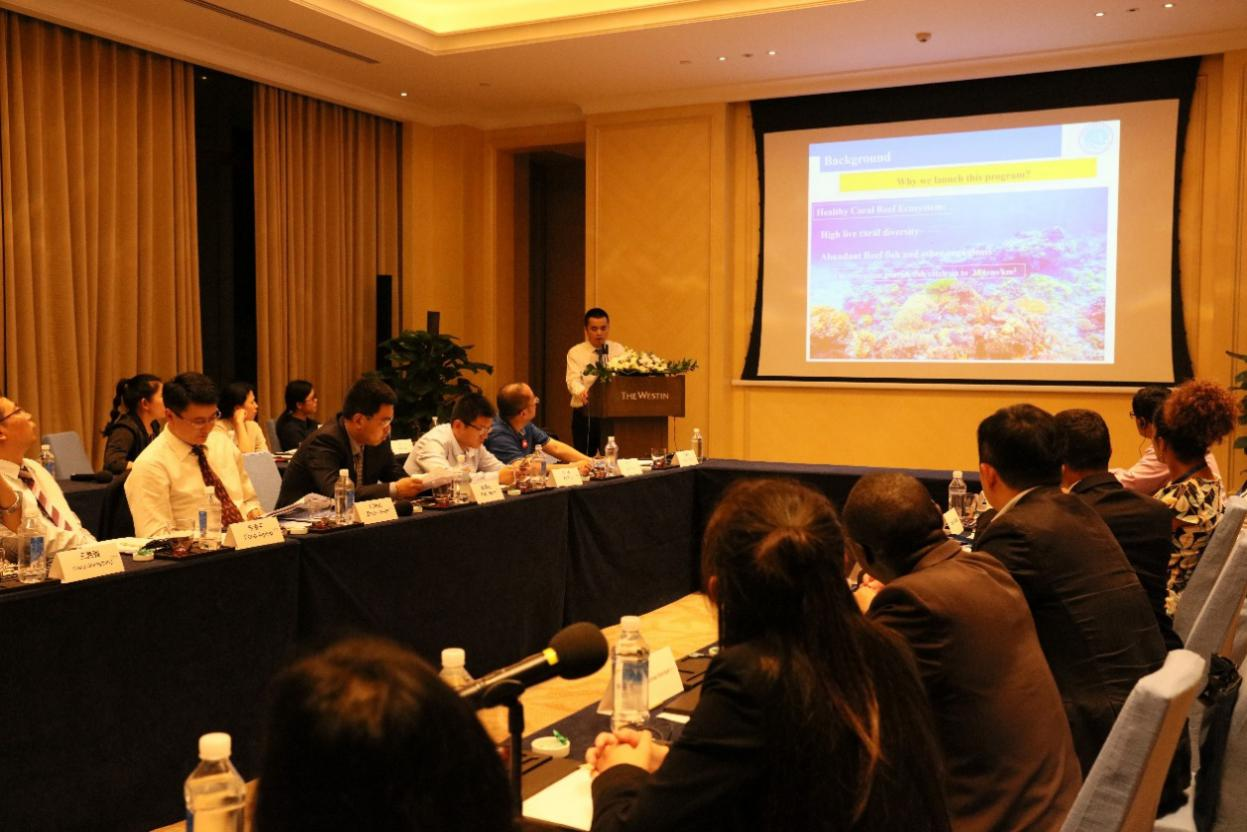 图:海岛中心刘建辉副处长介绍珊瑚礁监测与评价项目合作方案