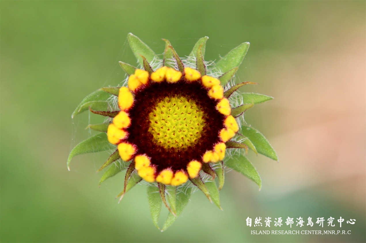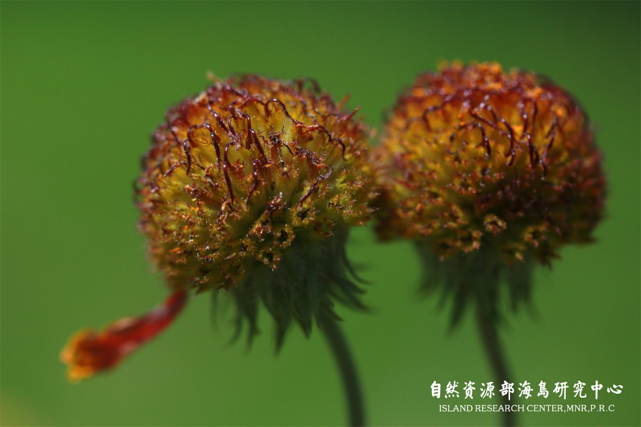 头状花序心红似火,顶部黄色基部带紫色花瓣好似舌头(舌状花),