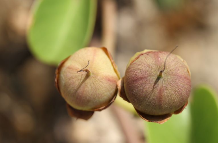 果:蒴果球形,果皮革质,4瓣裂,高1.1-1.7厘米。