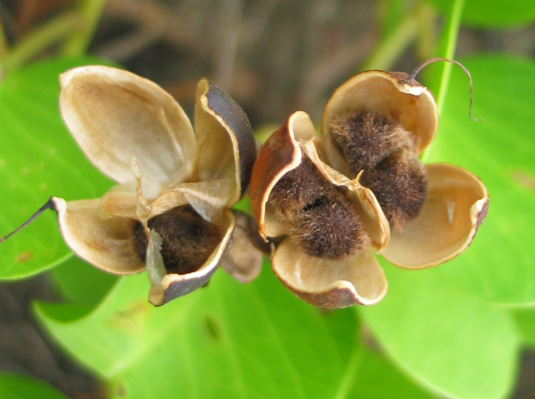 种子:三棱状圆形,长7-8毫米,密被褐色茸毛。