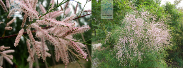 柽柳属植物通常为灌木或乔木,多分枝,幼枝无毛;枝条有两种;一种是木质化的生长枝,经冬不落,一种是绿色营养小枝,冬天脱落?;ㄐ》酆焐?,种子被白色柔毛,每年可开花1-3次,集中在4-9月。