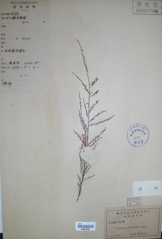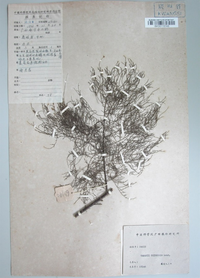 海南记录的柽柳标本-由陈焕镛院士鉴定,可惜未记录具体年份