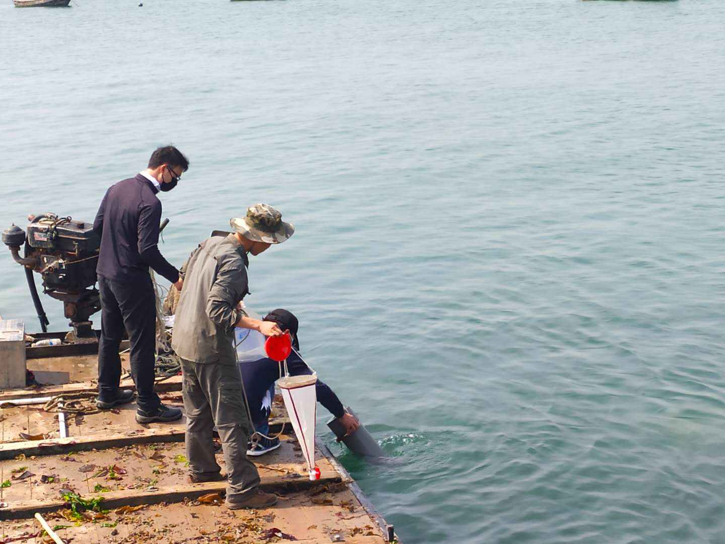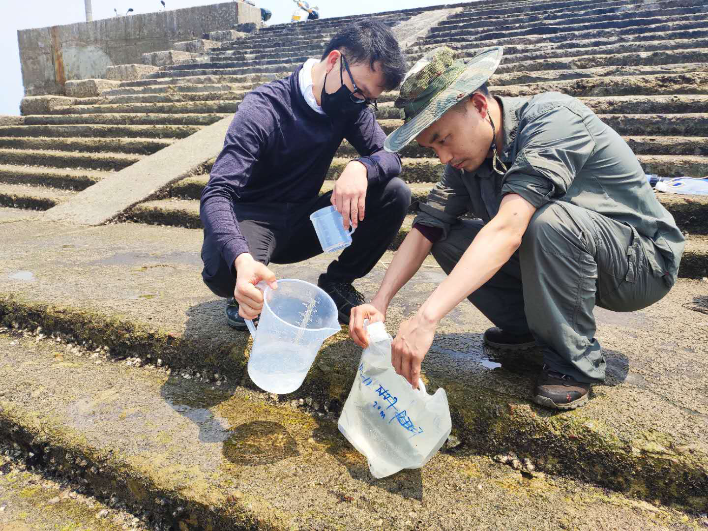 4月18日上午,中心陈淳和林震两位博士与海洋三所研究员顾海峰等一行6人,在平潭月亮湾、海坛湾、渔屿村、钟门村等附近海域开展了海水取样工作。据了解,此次通过采集平潭近岸出现“蓝眼泪”现象的海域水体样品和海洋环境状况数据,旨在与前期开展的台湾海峡西侧平潭近岸海域断面观测数据进行对比,探索平潭“蓝眼泪”起源与早期发生的生态学机理,为其可能出现的生态灾害风险和监测预警提供理论依据。