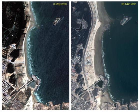 工程区位于平潭岛海坛湾南部岸段,北起龟模屿,南至龙王头。海滩设计岸线长1359m,设计干滩宽度60m,设计干滩高度4.5m(黄零),海滩补沙设计两层,垫层沙粒径0.5~1.0mm,表层沙(顶层约0.5m)粒径0.6mm,总补沙量为34.53万m3。