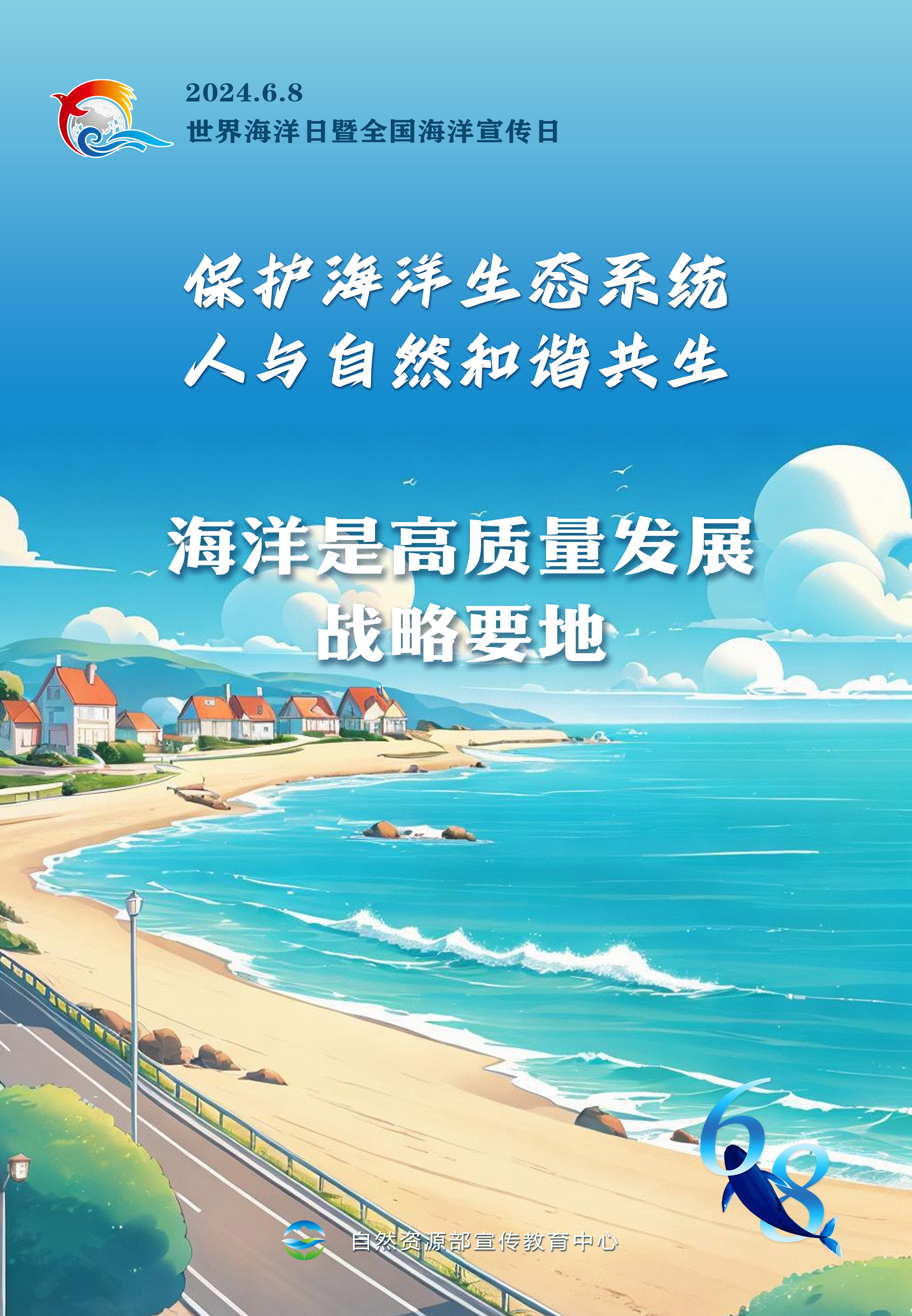 2024年6月8日是第16个世界海洋日和第17个全国海洋宣传日,活动主题是“?;ずQ笊低?人与自然和谐共生”。自然资源部宣传教育中心策划制作了宣传海报,供各地下载传播。