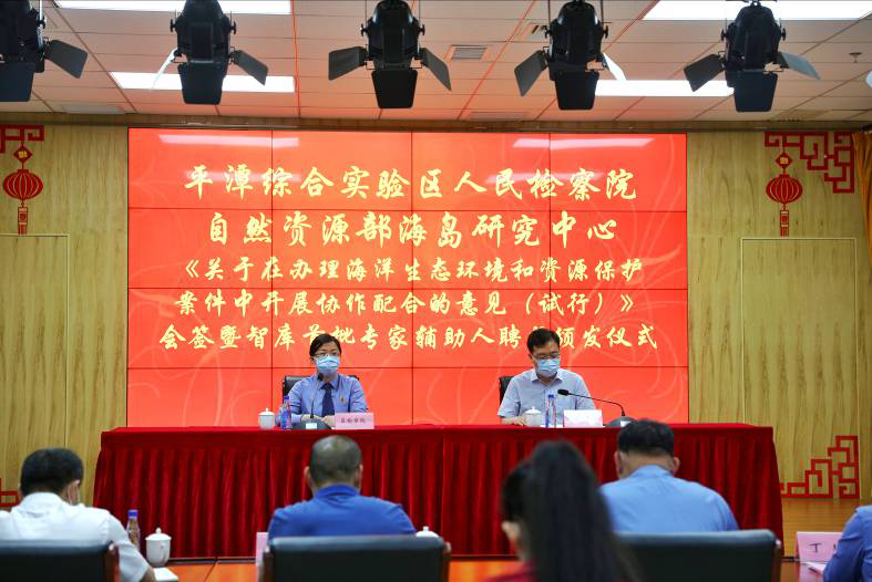 会上,海岛中心副主任丰爱平和平潭检察院党组副书记、副检察长江莉会签了《意见》,并为智库首批专家辅助人颁发聘书。“作为驻地在平潭的国家业务中心,我们有义务、有责任为?;ず闷教兜暮Q筇峁┲С?,为平潭‘一岛两窗三区’建设贡献自身力量?!狈岚奖硎?,协作配合意见的签署和首批专家辅助人聘书的发放,是推进两家单位业务方面深度融合的创新性举措,也是落实各自上级部门要求的具体行动。