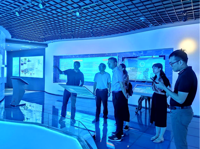 在参观中心规划沙盘、海岛科普馆与海岛数据平台的过程中,张海峰主任向调研组介绍了中心总体规划、职能定位、科技业务发展及国际交流合作等情况。肖长培副厅长表示,海岛科普馆作为全国中小学生研学教育基地、青少年海洋知识教育基地与海洋生态法制教育基地,承担着海洋知识教育的重要责任,要大力打造文化地标,讲好海岛故事;同时,希望中心能够在海岛保护修复与管理方面发挥更大作用,助力全省海洋经济和文旅产业高质量发展。