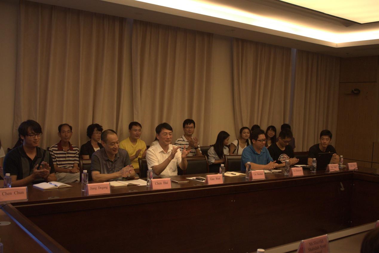 会上高文副主任代表海岛中心对其到来表示热烈欢迎,并致欢迎辞,海岛中心科研人员参加了座谈会。海岛中心于帆博士向与会专家介绍了海岛中心的发展概况、人才队伍建设、科研项目进展、未来规划等情况,专家们纷纷对海岛中心在短短的两年时间里,能建成如此壮观厚重的科研楼并投入使用表示敬佩和赞赏。同时,科研人员还与专家们就海岛生态监视监测与制度建设、城市发展与再生能源的产业结合、污水处理及风光互补应用、平潭岛生物多样性保护等问题进行了深入讨论与交流。