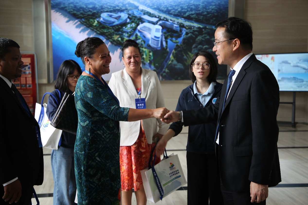 11月4日上午,斐济渔业部部长阿利蒂亚·拜尼瓦鲁、库克群岛基础设施部常秘伊丽莎白·福斯特·赖特、马尔代夫渔业和海洋资源部国务部长穆罕默德—穆塔利布等一行12人在参加中国—岛屿国家海洋合作论坛期间到海岛中心访问,中心主任、党委书记张海峰接待了访问团一行。
