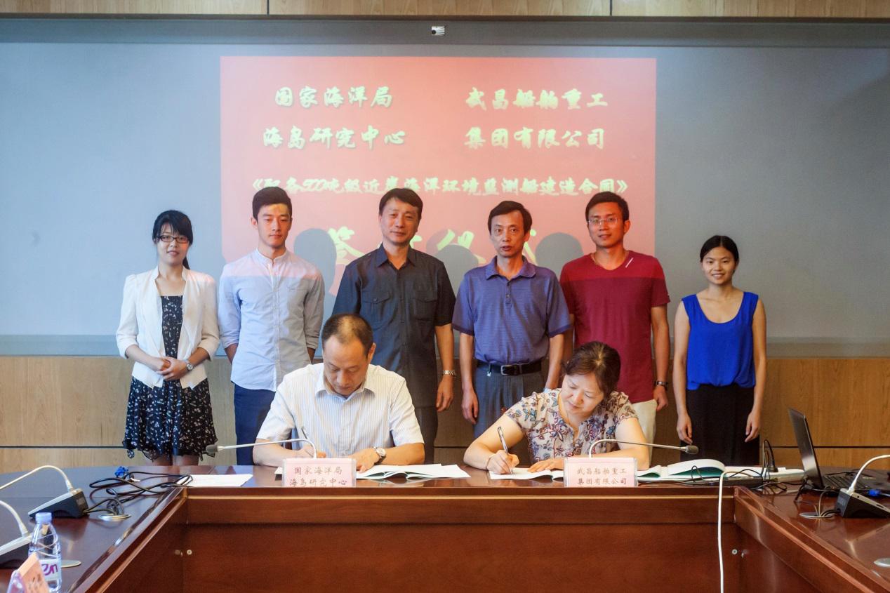 2015年8月5日上午,国家海洋局海岛研究中心(以下简称“海岛中心”)与武昌船舶重工集团有限公司(以下简称“武船”)在海岛中心会议室签订了《配备500吨级近岸海洋环境监测船建造合同》。