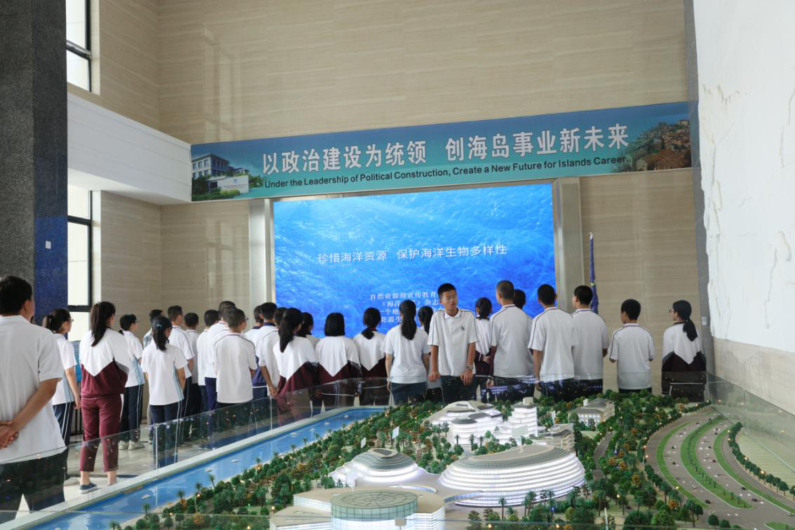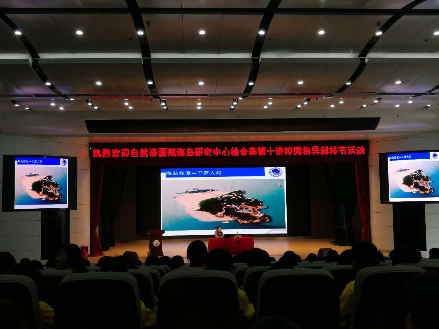 中心科研人员为师生代表们耐心讲解海岛基本知识、介绍中心开展的海岛保护工作,播放海岛知识宣传片、保护海洋生物多样性宣传片等,引导他们认识神奇美丽海岛,树立关爱海岛保护的意识。