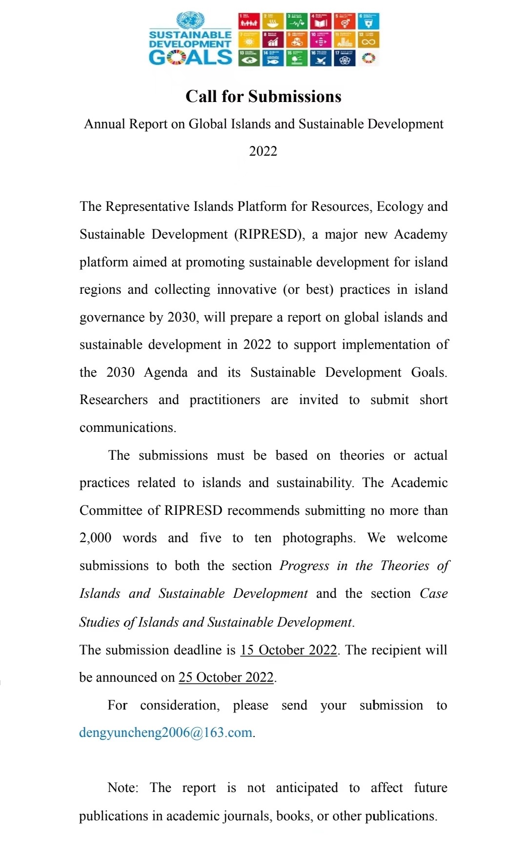 Call for Submissions- Annual Report on Global Islands and Sustainable Development 2022